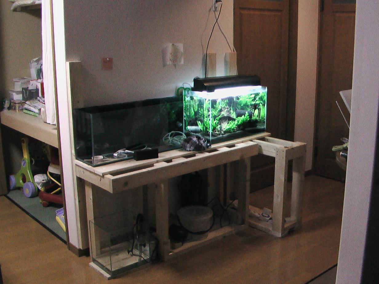 来る日も来る日も、せっせと解体してきた結果、ようやくすっきりしました。 下地結構入れてます← インパクトは音が大きいので子供が寝たらNG。 そこで解体終了間際は・・・ドライバーで、手で、コーススレッド抜きました^^; こういう時に限って、90ミリとかの長いコーススレッドで打ち込んでるし・・( ´△`)アァ- 上の台は再利用です。 L型にするので、ドッキングする台をバラシタツーバイ材で加工しました。 今日の仕事の休憩時間を利用して作りました。 さっそく家に帰ってからドッキングして、今度は1525ミリに切った1x4材を面材に。 前と大した変わりない・・? いえいえ・・今回は工夫してるのですww 壁と面するとこに2x4材を立てました。ここにおいおいライトやガラス蓋を置くブラケットを付ける予定。 メンテが楽になると・・・思う。多分。 画像はないですが2x4材の38ミリ分が壁からすくのでここに外部のホースをくぐらせようと思います。 外部すっきり計画ですねww 水を余ってる水槽に移し変え、嫁さんと二人で設置ww 90スリムもとりあえず設置ww 今回は90スリムと60を並べることにしたんです。 ここの壁は1500ミリ幅なのでピッタシ(^o^)ノ 漏れ水槽です。 これを機に外部のみですっきりろ過です。 まだまだ完成には程とおいですが、今日もヘトヘトです^^; 後片付けも追いつきませんww ですが充実感はありますね。 DIYな夜でした(^o^)ノ PR |